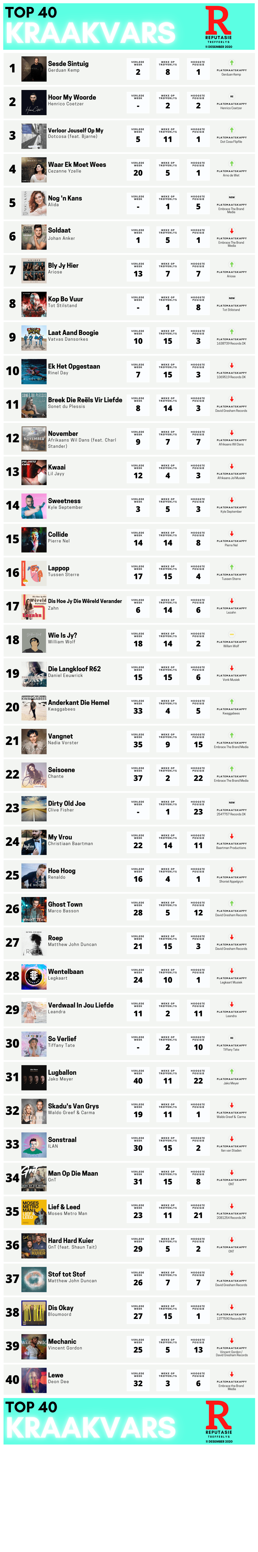 Hierdie week op die Reputasie Kraakvars Top 40: