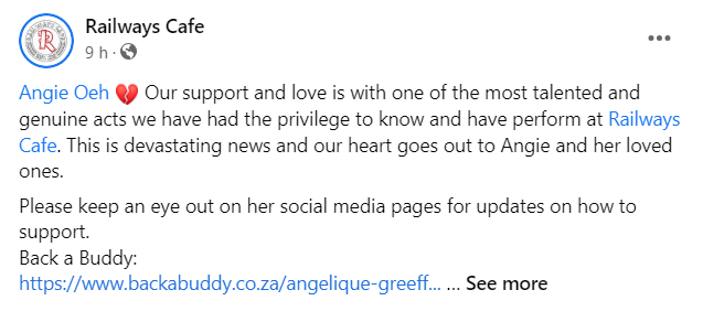 Jy kan ‘n bydra maak deur Back A Buddy kliek hier: https://www.backabuddy.co.za/champion/project/angelique-greeff-5678422846318595004