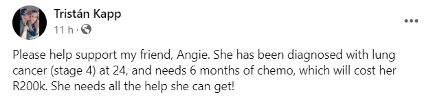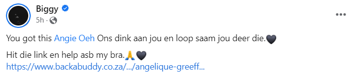 Angie skryf op sosiale media:
