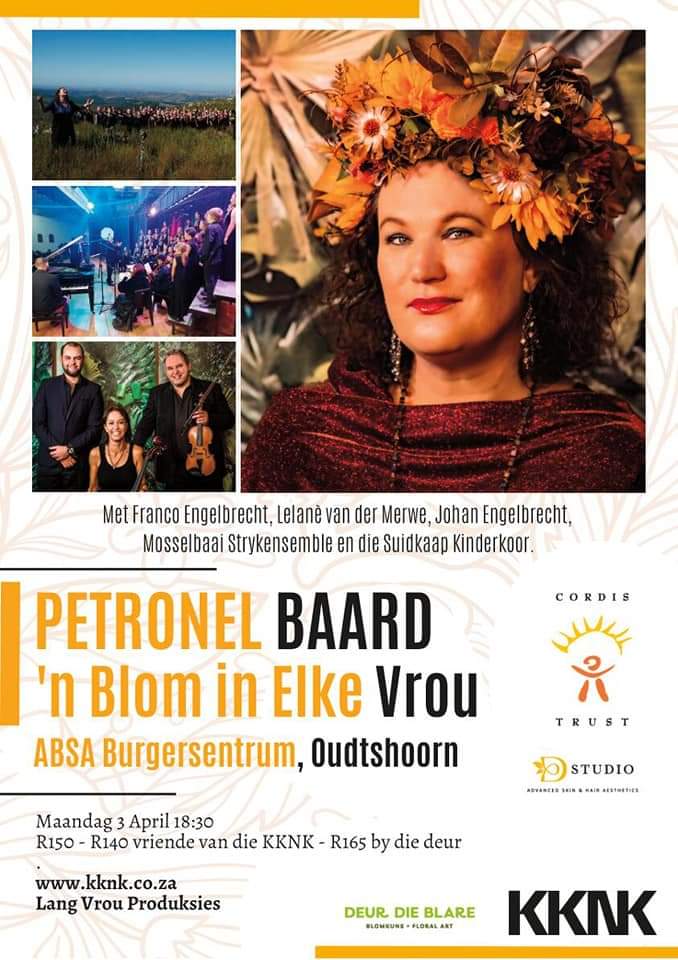 Petronel gesels oor haar jongste produksie,’n Blom In Elke Vrou, wat net een vertoning by die Klein Karoo Nasionale Kunstefees (KKNK) sal hê. Sy gaan op ‘n poëtiese reis deur die vier seisoene, vergesel van eie toonsettings, geïnspireer deur die klank van inheemse plantname. Die teks is deurspek met verwysings na seisoenale plante en deurvleg met gedigte van Mardene Marais van Cordis Trust.