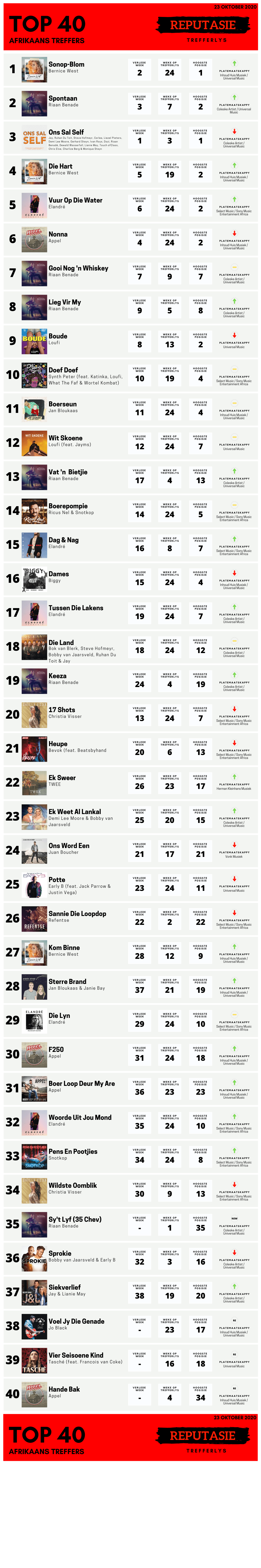- Kunstenaars met die meeste verskynings op die Reputasie Top 40